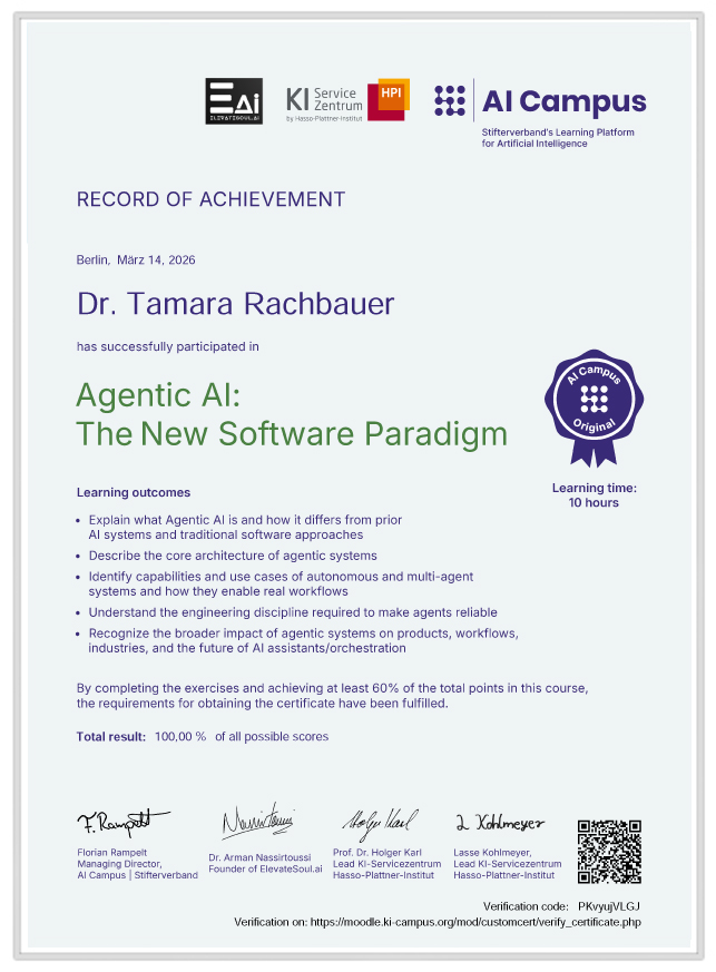 Leistungsnachweis über die Teilnahme am Seminar: Agentic AI: The New Software Paradagim am KI-Campus (03.2026)