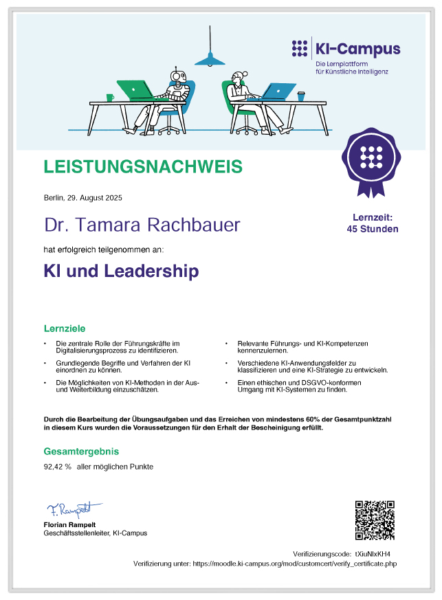 Leistungsnachweis über die Teilnahme am Seminar: KI und Leadership am KI-Campus (08.2025)